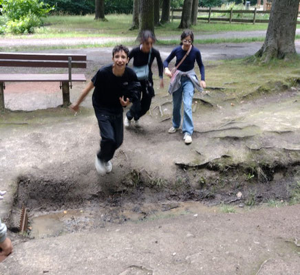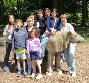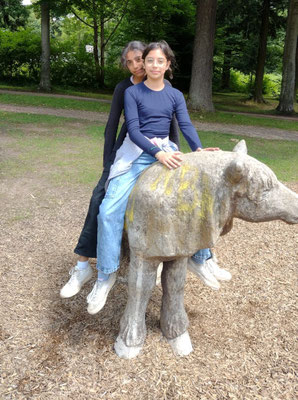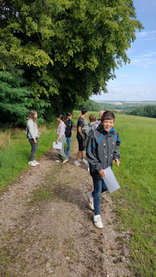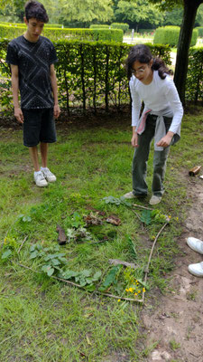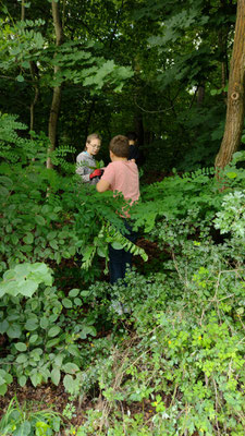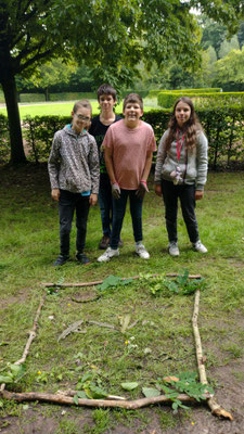 Junge Naturforscher erkunden die Natur Ausgerüstet mit Bildmaterial starten wir in den nahen Wald. Zuerst steigen wir die Schlossstufen hinauf zum Schloss — das war anstrengend, biegen dann ab in den Wald und suchten die Bäume und Sträucher, die wir auf unseren Bildern finden. Buche, Eiche, Robinie, Kastanie, Hasel und sogar eine Lärche am Waldrand der Käpplerwiese. Am Palaisgarten gestalten wir ein Waldbild mit Materialien, die wir im Wald finden. Zurück geht es über die Schlosshangwiesen in unser Domizil. Hier bereiten wir uns ein gesundes Vollkornsandwich zu und lassen es uns schmecken - frische Luft und Bewegung machen Hunger. Wir haben viel gelernt und hatten Spaß dabei.