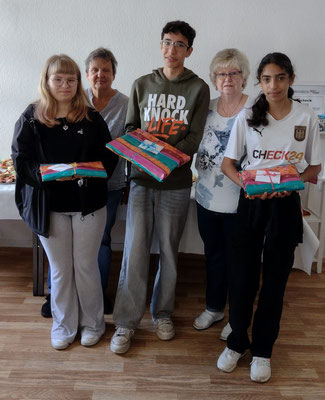 Ahmed Alkoud half am letzten Tag unserer Präsentation den Vereinsmitgliedern Ute Hoch und Ruth Mehnert beim Zusammenräumen und Verstauen der angebotenen Artikeln.