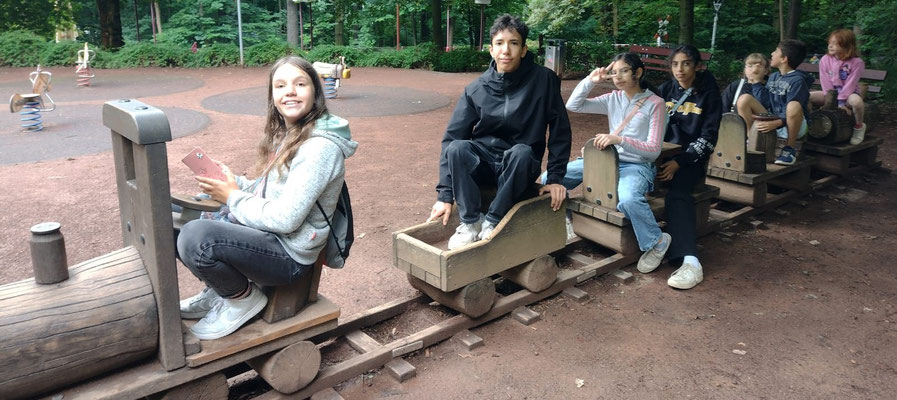 Am 23.7.25 unternahmen wir eine Fahrt nach Chemnitz. Dort haben wir dann 2 Runden mit der Parkeisenbahn durch den Küchwald (vorbei am Kosmonauten Zentrum und einem großen Spielplatz) gedreht. Nachdem wir dann unseren Hunger und Durst gestillt hatten, durften sich die Kinder noch auf dem schönen Spielplatz austoben. Es war für alle ein schöner Tag. Den Kindern hat es sehr gut gefallen.